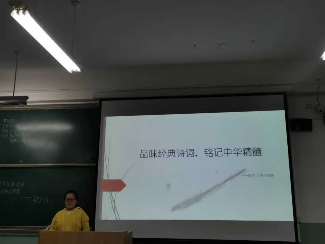 这次活动以软工各班为单位,在各班自习教室举行。各班班长组织同学们进行热烈的讨论,并进行了“诗词接龙”、“狭路相逢勇者胜”等游戏,最后由各班班长对本班活动进行点评总结并对表现得出色的同学提出表扬。活动结束后,同学们纷纷发表了自己对本次诗词活动的看法。