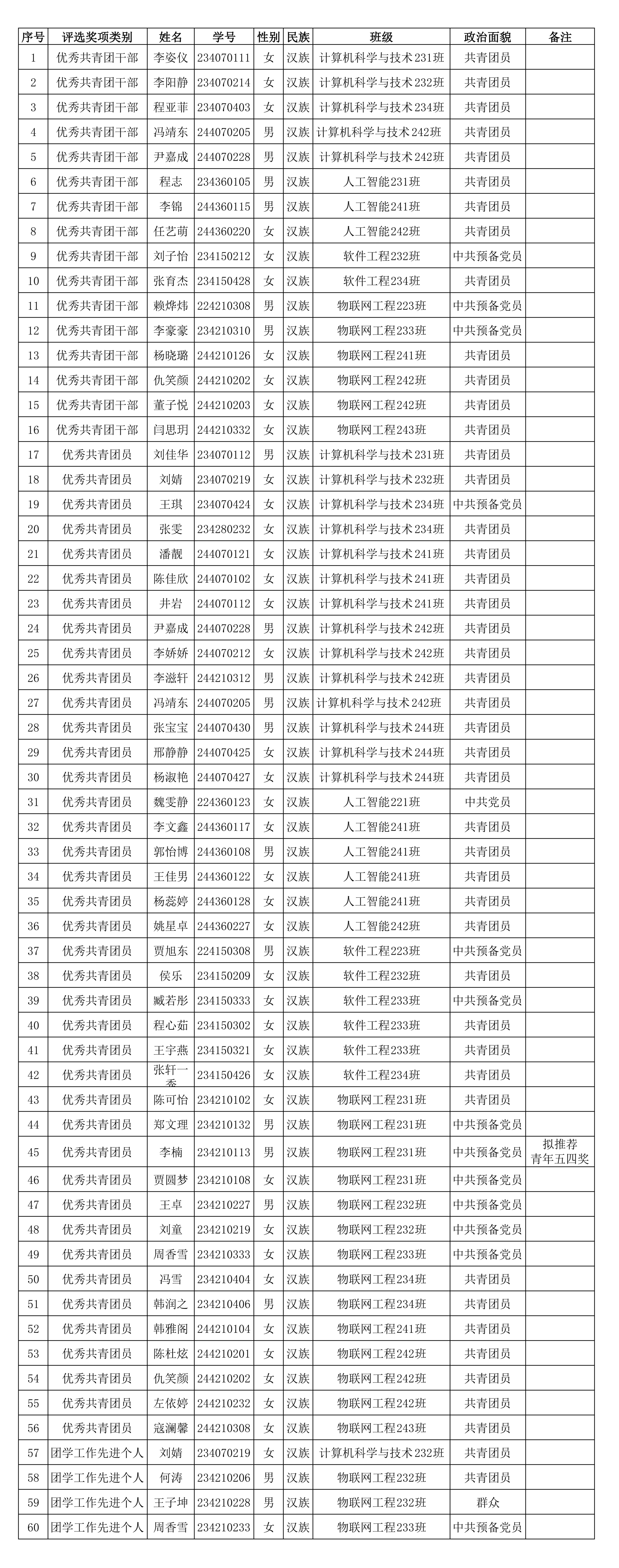 根据《关于开展 2025年度西安航空学院 “五四”评选表彰工作的通知》、《西安航空学院“五四”评选表彰工作办法》等文件要求,本着公平、公正、公开的原则,经个人申请、团支部推荐、团委审核,现将拟推荐候选名单公示如下: